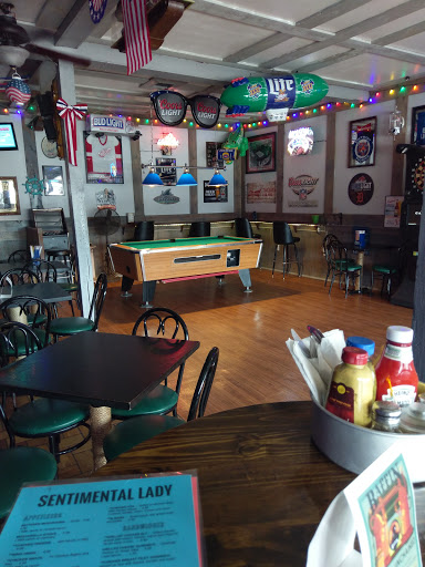 We are new to the neighborhood and was told The Sentimental Lady Saloon had awesome burgers so we thought wed give them a try. I ordered the Juicy Lucy Burger - which as anyone who has heard of a Juicy Lucy knows, is a burger with cheese inside of it. Well, someone needs to explain that to The Sentimental Lady Saloon. The bun was huge, far bigger than the burger. No cheese inside. They slapped two strips of bacon, a tiny bit of grilled onion and a piece of cheese on top. There was nothing "juicy" about this burger. If I wanted a regular bacon cheeseburger I would have ordered one. To pay $7.99 for this burger and not even get any fries or a few chips was a disappointment. The bartender was loud and obnoxious - nearly as much as the patrons at the bar - who clearly were regulars. We wont be going back.