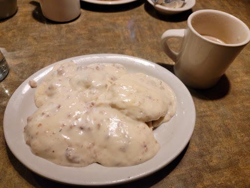 Pretty good place. We just had a cheese and bacon omelette with hasbrowns, sausage gravy and biscuits, and we had to try their homemade cinnamon roll. They over did it on the icing, but it was good.