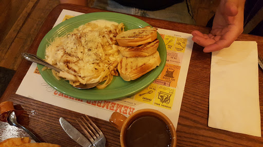 Charming atmosphere, full bar, wonderful food, great piped in music, clean and the owner and staff are welcoming. Ive never has a bad meal or bad service and I eat there a couple times a week. Breakfast, lunch and dinner are all really good. Cant say enough good about it. So glad its in my own backyard.