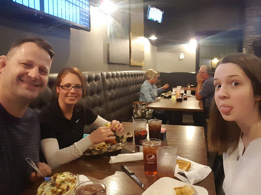 Buddies has been on the short list of places to try near our house for some time. Why we never got there is a mystery, but we finally hit it up for lunch. Even the day we went, it was second choice. I had heard about a deli inside a hardware store on Aurelius Road and that’s why we went looking for. We found Big T’s Extreme Deli inside Brower’s Hardware, but there was a closed sign on the counter, so we were forced to find something else. We had just drove by Buddies and my girlfriend suggested we turn around and head back there. Buddies is located in a strip mall at the corner of Holt Rd. and Aurelius Rd. It’s a huge space with a nice big outdoor patio. The heat index was up over 90 degrees the day we stopped in, so we passed on the outdoors thing. The inside is seperated into two rooms. The main bar area with a variety of pub tables and regular tables scattered around the bar and then there’s another non-smoking room off to the left. We took a table in the non-smoking section. Our waitress came over for drink orders as we looked over the menu and it’s a pretty big menu. By the time she came back with our Pepsi, we still weren’t quite ready, so she gave us a few more minutes. I went simple and predictable again with the Black-n-Bleu Bacon Cheeseburger. With the sandwich you get your choice of chips or fries and I chose fries. The sandwich was cooked perfectly medium with just a hint of pink in the middle. The bacon wasn’t the usual strips, but instead chunks of bacon which made eating it easier. You didn’t have to fight through bacon which tends to be tough on burgers. I could see the bleu cheese, but the taste was very faint. I could tell it was there, but I really like the taste of bleu cheese to almost be overpowering. The sandwich was good even without the strong taste of cheese. The fries were fresh cut and cooked to a perfect golden brown. My girlfriend doesn’t usually like fresh cut fries because they don’t crisp up as well. She called these fries the best we’ve had in Lansing. They were simply seasoned with just a little bit of salt and each of our baskets came piled with them. There was no reason either of us should have left hungry. My girlfriend ordered the Fritter Wrap. I’m going from memory here since there isn’t a menu on-line that lists this option, but it’s crispy chicken strips wrapped in a jalapeno tortilla with three cheeses, lettuce, and tomato (there may have been more on it, but I don’t remember). She really liked the jalapeno tortilla. Every now and then she would really get a bite of the heat, but it wasn’t every bite, so her mouth wasn’t constatnly on fire. Our meal was just over $20 and I think we both left happy. If I had a complaint it would be that our drinks never got refilled. The waitress came by two or three times but never offered another drink until she dropped off the check. By then, I was done with my meal and didn’t want to drink another Pepsi, so I passed. Buddies is not only a good restaurant, but a great bar. It’s a nice big space and there are flat panel TV’s all over the place. I could definately see myself stopping in for a beer or taking the family there for dinner.