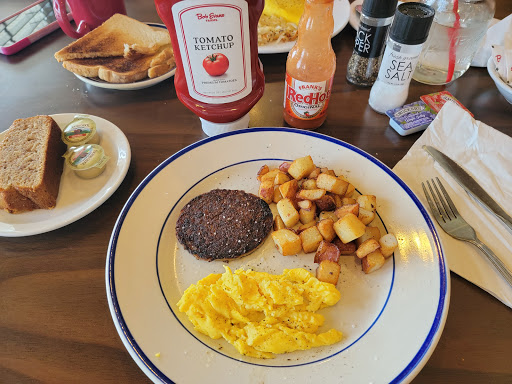 The staff is always friendly. You can tell the kitchen is slow and always behind. We didnt try it for about 2 years but came back because we heard they had a new manager. Same old stuff at this Bob Evans. Better off going to Red Olive if you want a better experience.