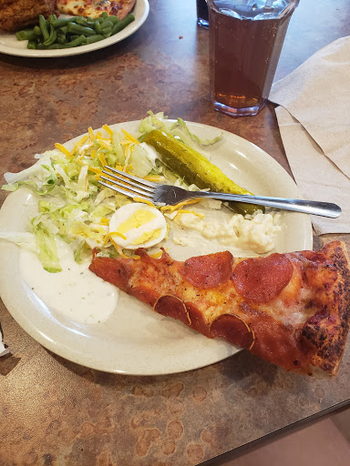 Clean place. Staff is very friendly. Salad bar had fresh items. Pizza buffet was interesting in its combinations but tasted so-so. The rest of the buffet items were canned institutional. Good place to take kids as there were lots of them.