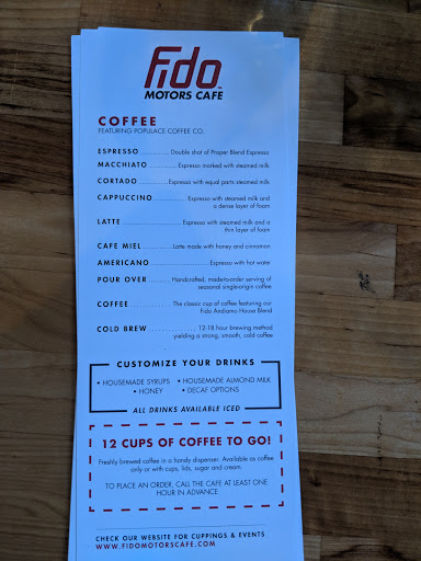 The coffee and service here are wonderful. The baristas always have good knowledge of the choices available. The atmosphere here is great, with windows looking into the Fido Motors workshop.