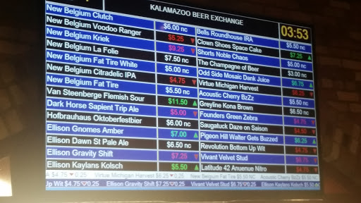 Another one of downtown Kalamazoos must-try spots. Here are my pros: - stock market approach to beer pricing is fun and unique - worth a visit just for this. - menu is unique (even the standards have great twists to them) - food is always in the good to great category - service is usually friendly and on point. Even when theyre slammin busy. -Pinball! There are some challenges: - this is a hotspot in Kzoo. Expect a wait for a table on Thur-Sat evenings. - The open atmosphere also means load. It isnt the place to go for an intimate conversation with friends