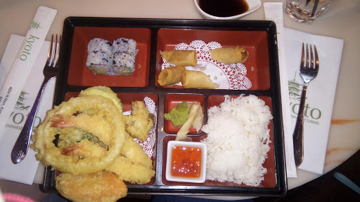 It seems like everywhere you go these days, places want to claim they serve Japanese food. Most places, thats really not true. People go to Hibachi style grills thinking that is an authentic Japanese experience but it isnt. You can get some good food perhaps, but its not really Japanese food. Kyoto has a hibachi style experience in one area if you still want that. It is indeed fun, and if you have kids, they always absolutely love the show the chefs put on. If you really want true Japanese food, you can get that as well. You can get proper Sushi and Sashimi, Teppanyaki, Maki, Temaki, Soba and Udon noodles, Tempura, etc. The menu gives you so much choice and all good. The prices are a tad high, so if I could I would remove about a half star, but all it all, its not bad. My kids wanted to go have true Sashimi and Sushi and loved the experience. Whether you want to go all out traditional Japanese, or have a milder experience, you should find something here youll like. The wait staff is very attentive and can answer any questions you have, and were able to help guide us in a lot of our questions. The atmosphere is really nice and I was made to feel very welcome. Actually, just thinking about it makes me want to go there. I may have my answer for dinner tonight!
