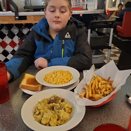 We love the diner, but twice weve run into a super rude old man who apparently likes to yell "shut up" and bang the dishes, walls, etc. at children. The diner could be super noisy with adults talking and laughing loudly, but he only yells at kids laughter and merriment because hes a jerk. We told him to stop harassing our kid (who wasnt being bad, just excited to eat) and he told us to mind our own business, which gave us a good laugh. The other patrons near us thanked us for saying something and commented on him being out of line as well. The waitress told us he does this to every kid, every time hes there, and that he would be banned. So we went tonight and look who shows up? He gave my kid the evil eye right away, and, even though the diner was empty, still sat near us (?). Its like hes looking for a fight. With a kid. If we have an incident again, I dont know what theyll say they will do about it, but they should respect their other customers enough to follow through with the ban. At the very least he is disruptive, at most, he is threatening violence to children.