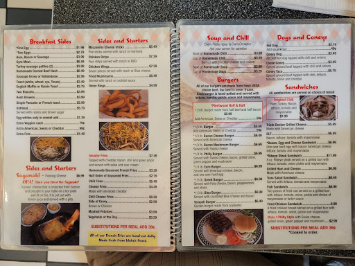The Fleetwood Diner is a throwback and exactly what you think of when you think of the word "diner." My first weekend in Lansing, I accidently stumbled on the Fleetwood while driving around lost trying to get back to my new place, so, of course, the next day we headed back for breakfast. The Fleetwood is an interesting place. The exterior is a metallic silver. The inside is cramped. You walk into the counter and to either side is a small dining room. One smoking and one non-smoking. There is a bench that runs along with wall with tables pushed up against them and chairs on the other side and there are a couple booths along the back wall plus a few tables in between. We were seated at one of the in between tables. The host gave us the menus and took drink orders. A different waitress came back with drink and took our meal order. I got a bacon omelet which came with four pieces of toast and hash browns. The omelet took up a good portion of the plate and had big chunks of cripsy bacon. The toast could have used a little more butter and I didnt really dive into the hashbrowns since Im not really a fan. The other guy in my group got the french toast and a cup of coffee. His plate came with 6 pretty good slices of bread which he polished off pretty quickly. Now, the ladies dove right into the Fleetwoods specialty....the Hippie Hash. My girlfriend got eggs and toast and got the Hash as a side. She didnt say anything about either the eggs or the toast, but really enjoyed the hash. Hippie Hash consists of the Fleetwoods homemade hash browns topped with grilled tomato, green pepper, onion, mushroom and broccoli topped with feta cheese. On the plate, it just looks like a mess, but both my girlfriend and her mom (who ordered the Hippie Hash as a meal) enjoyed it and will probably go back for it. The Fleetwood is just a classic 24 hour diner. The people were great, the atmosphere is that retro diner feel Im always looking for in a new city. The food was alright, but Im sure this is a place Im going to take anyone and everyone who comes to town for a visit. You just have to see the Fleetwood.