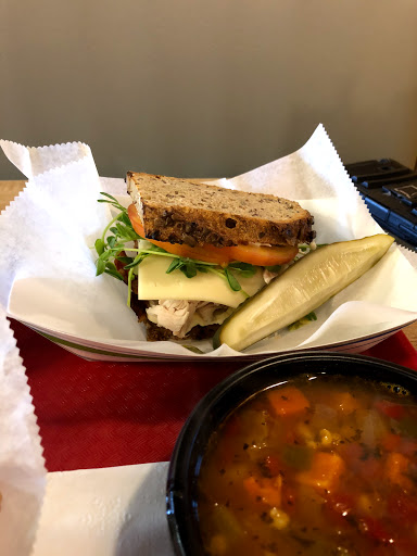 Amazing food, my friend is a pescatarian, he had the albacore tuna sandwich with the poblano & white cheddar soup. I enjoyed a vegetarian sandwich with turkey on a great whole grain bread. They have a build your own sandwich menu so everything works! The food is friendly both in the serving size and the price. 1/2 sandwich and cup of soup was $7.41 Service, Very kind, and friendly, ready to help with a smile. Cant say enough....