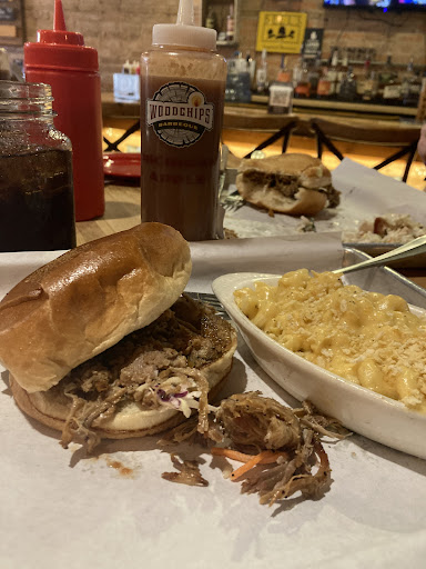 My hubby and I went on a date to Woodchips and I was really excited about it because it was new and there are NOT many options for eating in Lapeer. The atmosphere was superb. I loved it. Right down to the mason jar glasses. The service was good. Timely and polite though not overly friendly. I ordered the triple with sausage, pulled pork, and chopped brisket. I got mac and cheese and brussel sprouts as my sides. The sausage was absolutely delicious. Some of the best bbq sausage I have ever had. The brisket and pork were somewhat dry and had several chunks of fat/gristle mixed in with in them which is one of my biggest turnoffs. The brussel sprouts were also delicious and had a balsamic glaze on them which I loved. The mac and cheese was sadly disappointing as it lacked even basic seasoning. There were six sauces on the table. I did not try all of them as I dont prefer sweet sauces but my hubby liked the apple flavored one. The mustard sauce, which is always my preference at a bbq place, had wonderful flavor but was oddly watery, even if shaken up. There was also a spicy sauce but it was all heat and not much flavor. We would probably go again for a date night since our options are few, but it was nowhere near as good as I wanted it to be.