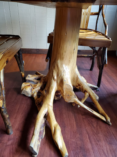 Rustic interior, upstairs outdoor patio overlooking the lake, very good menu, friendly service. Bar Lounge with plenty of seating. Large parking lot. Very nice country atmosphere.