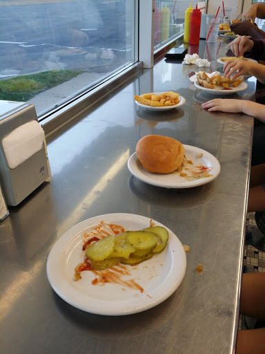 Classic old school hamburger stand. They arent sliders. Thats just how big a normal hamburger was - and probably should be... Awesome burgers, great crinkle-cut fries, fast takeout window, classic dining bar, and window seating. Its cash only, so be prepared to pay for your plastic-toting friend.
