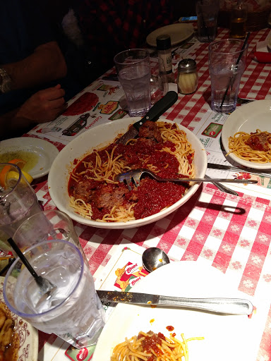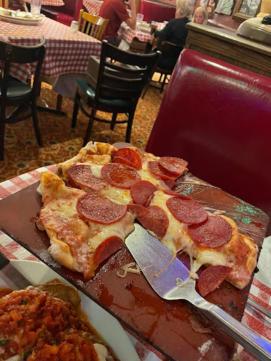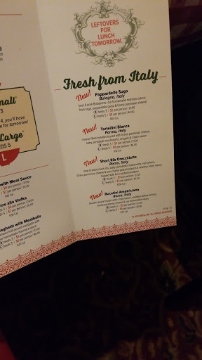 First the atmosphere is cheesy. The ceilings are low, theres "flare" everywhere, they just way overdo it to make you feel like youre part of a mob family at a wedding or something. I think only Americans picture Italy that way. But I can live with that. The food is actually really good, though nothing unique, just really good homestyle stuff. I was with a big group so I got to try the eggplant parm, chicken parm, manacotti and canelloni. All good, better than Olive Garden but not as good as Carrabas or Antonios in Novi. The canelloni stood out though, excellent. However the bread is very plain and not hot, the caesar salad and mixed green salad taste bland. Overall if you could get a plate of canelloni and salad for around $10 Id be satisfied and probably give 4 stars, but they ultimately fall way short on price. The large portions are advertised as for 4 people but two really hungry people could easily finish one, three people at most. The large chicken parm was I think 4-5 pieces, the mancottio and canelloni 7-8. So really if I were going there as a couple, by the time you order a salad, an entree and a side pasta its $25 a person and I can get way better food for that price.