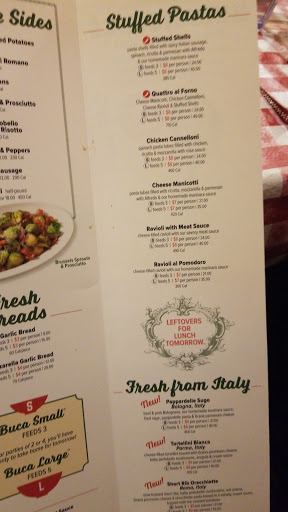 Updated review: Made a reservation for the "Pope Room" for my moms birthday. Our experience on this second visit was much, much better. We were seated immediately upon our arrival at the time of our reservation. Even those who came a little late were guided to our table very quickly (going through the kitchen, of course). The service was excellent. Even though we had only 1 server assigned to us, everything we needed was provided quickly and efficiently. Even special requests and coupons were handled quite well. Im glad I gave this Buca a second chance. It was well worth it. ================================================ Ive been to several Bucas, but this one was a bit disappointing. I made a reservation for a party of 8. When I arrived, I found wed been put in a 4-person booth with a table and two chairs. Thankfully, one of our group couldnt make it or there would be no way wed have all fit into that small space. It was quite cramped. The service also left a lot to be desired. Granted, it was quite busy, but it seemed that we were forgotten about quite often. The young lady, who I guess was assigned to our table, hardly ever came around. There was a young man who seemed eager to help, and he tended to us most of the time. That saved the evening. My recommendation: dont be afraid to turn down a reservation if you dont have the capacity to handle it properly. The 20-person birthday dinner, understandably, took up a lot of space. I would have been more inclined to visit again based on a "sorry were full at that time" rather than being shoved into a small corner. The food was excellent, much as Id expect from Buca. A plus on an otherwise less-than-optimal experience.