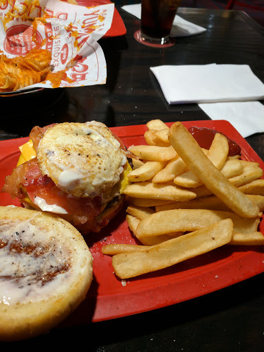 I dont know what happened. Ive always liked their burgers, but tonight something was off. Like, WAY off... I got the Whiskey River bbq burger, and got the hangover version. The party was flat & tasteless, exactly like a frozen patty tastes. I couldnt eat half of it. The manager came over to ask us if everything was ok, & I asked when they changed to frozen patties. She said it wasnt. Well agree to disagree. She comped the burgers off our tab. Waiter was attentive & better than normal. I may come again, and hopefully this was simply an off night.