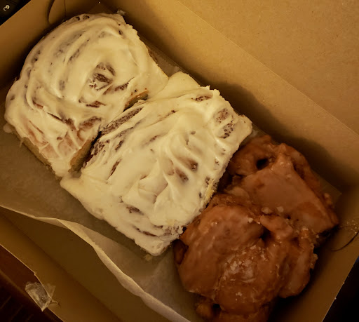 The cinnamon rolls, iced cinnamon rolls, and Bavarian cream filled donuts were all delicious.