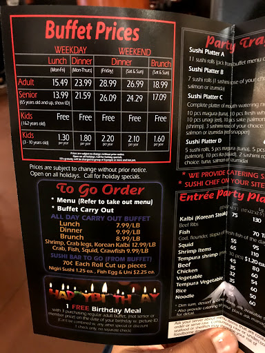 Used to be good, demand will drive costs up and quality down - Ill start by saying this place was A1. 100% of the time. Now, its about a C- on a grade scale and thats only with the food quality. To break it down, Ive been a patron here for nearly 4 years, a member for over 2. From the time they opened they won awards for being The Best - now id love to see what channel 4 would say. Membership renewals have increased? (20 to 25) why.. ? For 3 dollars of a person its not even hitting 10% ... you have more or less members making your numbers lower? No, but i bet the food costs and other factors are now covered by offsetting your memership fees. - dont worry well cover those.. or I said I would at least. Until 2016. Gone once, will not return. Since the cold entees seem to be a common thing along with hardened fresh sushi - I cant deal with the lack of food standards as Ill use the word lack in a favor to not using none as being a manger in the ServeSafe industry, the logs on these standing food items is some literature id love to take a peak at. - from the bathrooms to the booths - Things are just falling apart and if you dont fix the damn backed up sink in the mens bathroom thats never worked for the last two years -- just close your doors. Its a health violation and just plain lazynesa to not even sustain a good upkeep of in house, then what is all the budget and expenses going to exactly. The booths feel like I picked up the cheapest self kit kitchen table tried to put it together by hand then expected it to function for an everyday used item. Anytime anyone sits down behind me in a booth Im afraid its going to fall over on me. - new ownership same problems - they boast of new management yet its all the same problems. Nothing new about it, other than the new employees theyve hired. Hope that wasnt your ploy to save money. - In the end, Im sure youll remain in business sure, you have the owners of the whole fish market behind you. Will you have a comeback to be a better or best sushi bar buffet like you used to be.. well thats an open ended question for you to strive to bring your standards back to where they used to be for the patrons who got you to where you are now. Hope to see you again soon, until I see results, Ill walk in, look around first and judge until I see improvement. Ill even contribute to renewing my membership just to help with costs. Hope to see a new change in this new year. - Jan 1, 2017