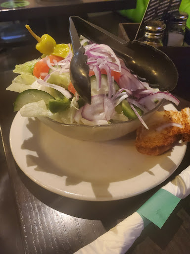 Its a very busy place, which was fine, & if you love trivia during your meal & can overlook terrible pizza sauce, oily salad dressing, & a musty smelling bathroom, this might be the place for you. The cheese bread and ranch dressing were good, everything else was mediocre at best. The antipasto salad has such large chunks of meat & cheese on it, most bites are either all meat & cheese or all lettuce & onion. The dressing is incredibly oily, even when moving it as we were pouring, it still tasted like pure oil on the lettuce. The pizza sauce literally tasted like tomato paste with a tiny bit of seasoning. My husband and I were only able to choke down one piece of pizza each before we lost our appetite. Lastly, aside from it being pretty dark & dingy inside the while restaurant, when I went to the ladies room, it also had a fairly noticeable musty smell. Im allergic to mold very have been sneezing since we went there. I know people seem to love them, but our excellence it is not worth the wait or the price.