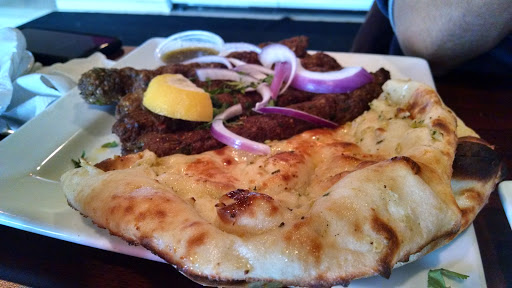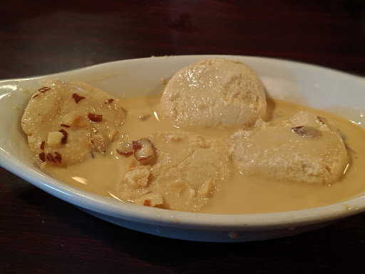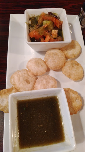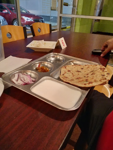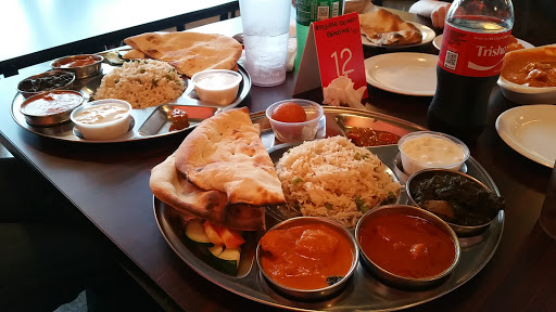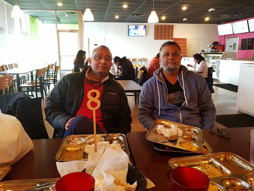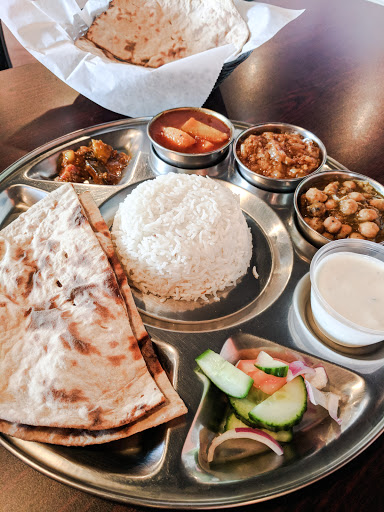 I havent had much previous experience with indian food, but Ive been here 6-7 times now and have always had a great experience. I usually get the thalis plate, which comes with your choice of 3 different meat or veggie dishes (they usually have about 5 options of each to pick from), naan (amazing bread), very good white rice, a few pickled veggies, some fresh chopped veggies and your choice of 2 different desserts (one is like a small donut-like cake, I forgot the name. I go with Kheer, which is the delicious rice pudding). The thalis plate is $8 if you pick only veggie options or $10 if you go with one or more of the meat dishes. Ive also tried the samosas appetizer, which are kinda like potstickers but not fried, and they come with a green sauce and a brown sauce. The green sauce is pretty good and the brown sauce is amazing. $3. You order the food at the counter and they bring it to you when it is ready. So no waitresses, but they have a tip jar at the register, if you feel inclined. I usually just grab a cup for water at the counter (free, of course) but you can also get a fountain drink (coke products) or a few different pop/juice options from a fridge they have. Decorations are a little different than what Im used to, but I think theyre cool. Bright colors. They have one-sided booth tables on one wall and the rest of the seating is tables and chairs for four. I come with friends from work, and when there are more than 4 of us, we dont have any issues pulling two tables together. If youve never tried indian food before, I highly recommend giving this place a try!