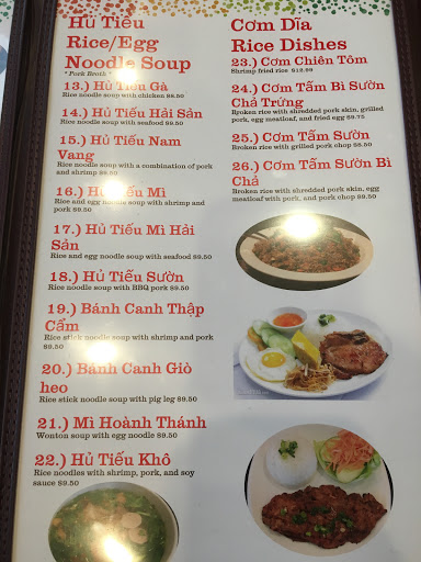 Just a real surprise! Ok... not a fancy schmancy eatery, with white linens and all. But quality food, for real. Dont be afraid, walk in! Affordable? Yes! Delectable? Yes! Quite different from what youre used? You bet! Why? Because youre looking for healthy food, light on the wallet (or is it "rightsized on the wallet"?) If you care about whats in a meal, youll care going there. Dresscode? Quite casual. The chef really cares about what he serves, not for the monthly bottom line but for the food experience he brings to the clientele (which has, Im sure, quite a few regulars). My wife and I had a Mì xào dòn each - its known as birds nest in some places, due to the crispy, deep fried noodles that form the bottom of the plate where the proteins (beef, pork, chicken and a variety of seafood - yeah, I know, sounds like everything BUT the kitchen sink, right?) sit with vegetables, and its just sooo good. The chef tells me this is usually a holiday meal (and with the previous description, I am ashamed I actually ate my entire order...) Oh, of course, they do have Bánh Mì and Phở, and also the ever popular Ice Coffee... Cant wait to go back!