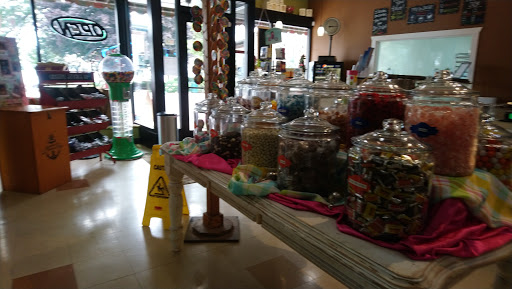 Such a cute and charming little gem. The store was hard to find driving by. We ended up parking a couple blocks down the street and walking back. It was a good idea hopefully burned off a few calories in advance. :) The shop is the perfect example of what you would expect of a candy store and ice cream shop. The ice cream is reasonably priced and large scoops delicious too. The chocolate confections in the cabinet ohh those are good. The candy in the bulk bins brings back memories and when my daughter and I saw the party room in the back of the store I wished my girls were little again.