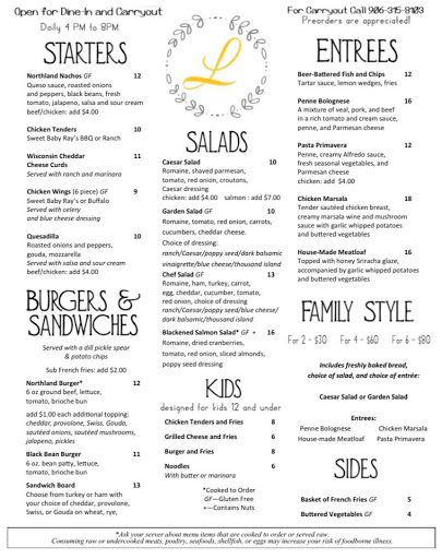Good homemade soups & salads. Like the nachos & pizza. Can order from the dinner menu, pricey but good