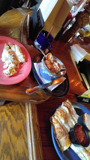 Loved this places food. Breadsticks with their special garlic and cheese dip was the best Ive ever experienced. The burgers are really amazing and so is the calamari. Worth enduring any faults named by other reviewers.