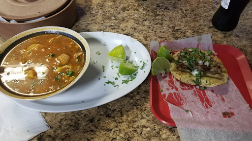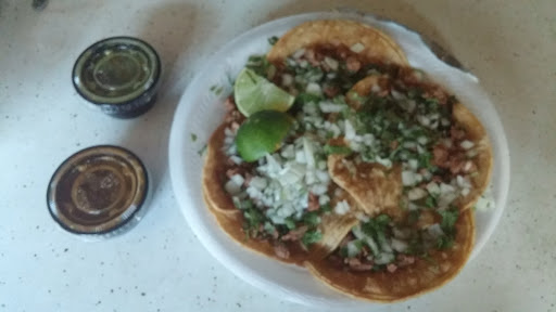 Great hole in the wall taco shop in the back of this small grocery store. Order your food at the kitchen, grab a drink from the fridge, and pay on the way out.