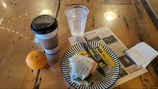 Lets begin with location: It is tucked away in a location that would be hard to find if you didn’t know it was there. Vibe: There seemed to be plenty of seating, even for busier times. There was an area for what Id assume would be live music and/or poetry readings, etc. BUT there were rules posted on the tables (no outside food or drinks & no Internet w/o purchase). By the way, the Wi-Fi password we were given was wrong! One very positive small touch was the availability of electrical outlets for plugging in devices (at every table, I believe). Coffee: I didnt understand charging $1 for a refill of brewed coffee. Really? Smh Worst of all, the latte that I ordered was lukewarm. Ugh. This wasnt the "great coffee" other reviewers raved about. Service: We visited about 8:00 on a Monday morning, and the place was dead. One other customer was there during our hour-long visit. Maybe, just maybe, this lack of business contributed to our baristas apathy; however, Id think it should go the other way -- almost going over the top with excitement that someone was visiting this establishment. Our barista certainly didnt look happy we were there. I walked away very disappointed. Had to brew my own cup at home to get a steaming hot cup of coffee.