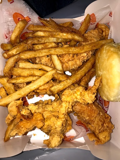 Place was dead at 6pm on a Monday. Ordered the 5 piece tender dinner and the 4 piece dinner. Drove the few minutes home and bit into cold fries. They forgot the biscuit with the tender meal. The spicy chicken was odd. Spice was not evenly distributed across the piece. Potatoes do not taste good. Cole slaw was OK. Overall, highly dissatisfied and wont be back.