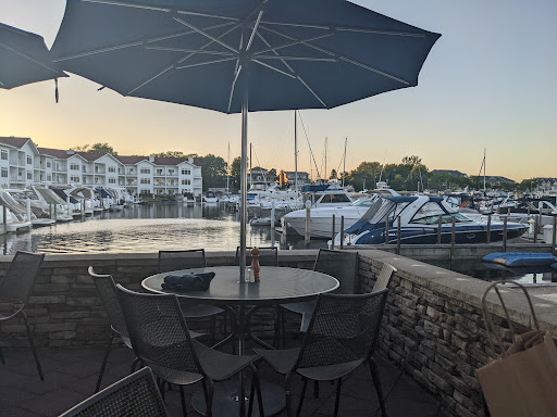 Dog friendly, nice view of the marina on the patio. Upscale good food and service as well.