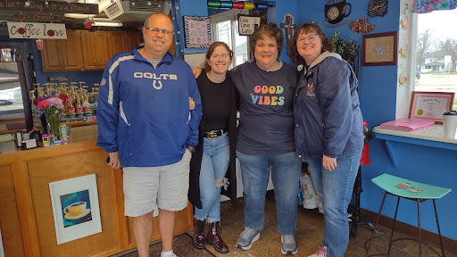 Cute little independent place that I wish I could rate more highly. Most of their business is as a drive-through I think. No tables. Two bars (one covered with flower pots and mostly unusable) with 3 uncomfortable stools at each. No outlets, no wifi (I used xfinitywifi), no music (the audio is overhearing the manager making personal phone calls ). Midwestern homey decor. Painted on the bar in front of me is "Thursday morning = girls" which is a sentiment I can get behind. Lots of coffee related knickknacks on sale. Tea is a raggedly set of boxes of bags in a drawer. Chai is Oregon Vile. Nice homemade pastries.