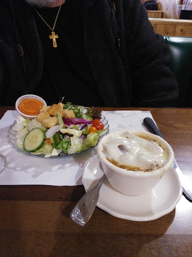 The only thing I tried on the menu was the French onion soup, it was surprisingly good. The service was great and the place seemed fairly clean. It has that "feel", nostalgic. Its going to remind you of someplace.