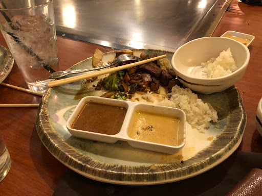 Wow, really not sure how this place has as high of a rating as it does. The experience started with a half-sized portion of bottom of the bag salad mix and from-the-can miso soup, certainly a sub standard start. Thats ok, they arent the main reason for coming here... hopefully the Hibachi is good. The Chef comes out and does some impressive cutlery tricks for about 45 seconds, then rushes through cooking our meal. He decided to mince up my Salmon (somewhat friendly, but un-focused) and you could tell most of the ingredients were bought from discount vendors. Its significantly below the quality of any other Japanese Steakhouse weve been to. The meal was served with the typical steakhouse sauces, all of which tasted off (expired?) and watered down. My wifes meal came with dessert or plum wine, which the waitstaff tried to ignore after asking several times. Once they finally acknowledged this, the offer was... "Chocolate or Vanilla". I take it your food cost is higher on the plum wine and you dont want us to order that? Overall, this was a discount steakhouse WITHOUT the discount. A few positive things... the restaurant was clean, and we didnt get food poisoning, but certainly not a glowing review. Id recommend looking elsewhere, this restaurant doesnt deserve further business.