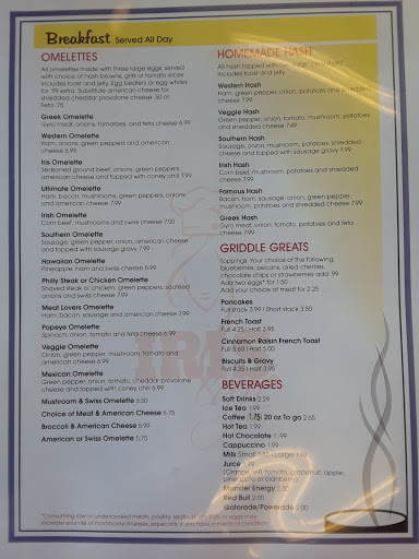 Great food and service!! Very clean place and all the staff is very friendly. If youre in the area check out Iris Cafe you wont be disappointed.