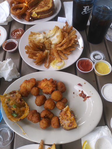 Not bad, not good. So, I would have rated this as 1 star, but Monday night, when we were there, they had designated "Motorcycle parking". My wife and I were on the scoot, so an extra star. Service was poor. I had to go ask for a waitress after visiting with friends for 30 minutes. When one finally came she said "this isnt my table, but Im going to take care of you". Well that was a stupid thing to say, IMO. I still gave her the benefit of doubt and left her a good tip. This place may have a management issue. Service was sub-par. Wife got the fish, she wasnt impressed. Our friend got the 99c Monday Taco special. He didnt like them. I got the Chicken Fajitas. I liked them okay. The veggies were not cooked as well as I prefer, but thats their style, I assume. The flavor was average, but there were ample portions. Almost enough for two, but I was really hungry that night and polished them off myself. Maybe this is more of a bar for the younger crowd. But the patio view of the lake was nice. We will likely not return here. Too many better choices for our style of dining. We thought the patio was the high point. But I went there for a good meal. They missed the mark, for my taste.