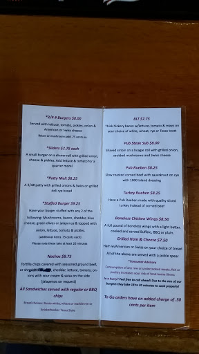 Amazing burgers, steak sub, bosco sticks! Excellent service and the atmosphere is your typical small town bar, everyone knows everyone. Drinks and food are the best bang for your buck, especially since they use eastern market meat from Detroit! Would recommend to everyone, Ortonvilles best!