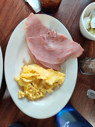 Not often you find a place with good thick bacon, awesome sausage AND a cook who sautes onions before adding to your eggs. Bravo Fiddy-1 diner!
