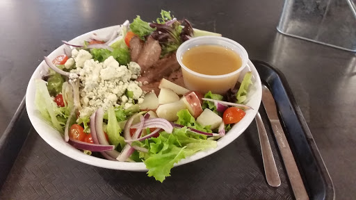 They have friendly service in the front of the store & seating for meeting or to eat. Durning the summer hours they have tables & chairs with umbrellas