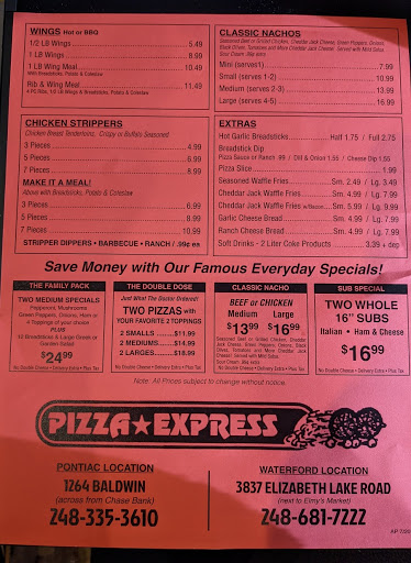 pizza express has the best damn bread sticks and onion dip!! the girls are mostly nice .. but sometimes not so nice..they dont like it if you have a complaint and should be schooled on how to treat and keep their costumers... pizza was way better 10 yrs ago than now.. now its NASTY!! but.. they do have great baked subs! if you want good pizza .. go to The Rocket .. its 10 secs away!