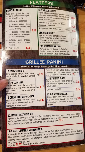 Arrived at 12:30 on a Saturday. Ordered corned beef with swiss and mustard, but the sandwich came with Russian dressing instead. However, it was just as tasty, so thats a minor knock. The corned beef is good. Most importantly, the double-baked rye is excellent - soft, spongy interior, crunchy crust (but not TOO crunchy or chewy), and not sliced too thickly. Thus far, I only know of one other deli in metro Detroit that perfectly nails the bread. Also asked for an old pickle and got a full half, which was nice since most places would only give you a quarter/spear - the pickle was excellent. Service was good and waitress was friendly, but it wasnt too busy. Prices are in line with other delis in the area.