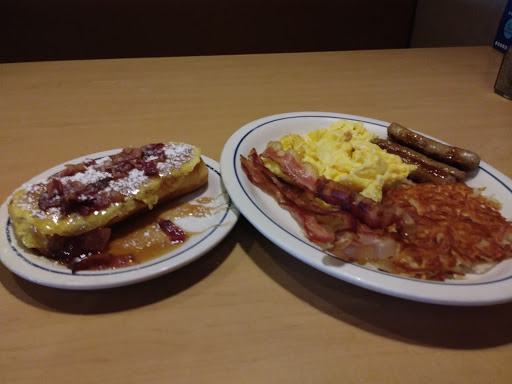 This was a horrible experience I have never been to an IHOP before tonight but I can say you should probably clean your tables and sweep up the huge noticeable things on the floor then having to repeat yourself three times on everything to having everything still come out wrong I will not be returning to this IHOP or any of them then when I asked for dressing and other toppings for my side salad they were very rude I would not recommend this restaurant to anyone