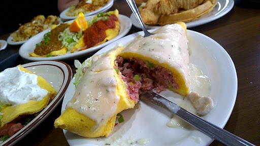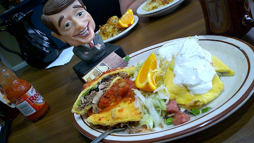 Me n my fiance went here and ordered two omelets. When they came out I thought the waitress got our order wrong because they looked like subs. I asked her were these omelets. She said yeah. We tried to eat them the eggs was flat and tasteless. I then had to confirm again were these omelets so I asked another lady were these eggs she said they bake the eggs it was horrible. Its gets worse the bill for two Orange juice one coffee n two omelets that we didnt eat 34.00 I will never go to this place again it deserves 0 stars