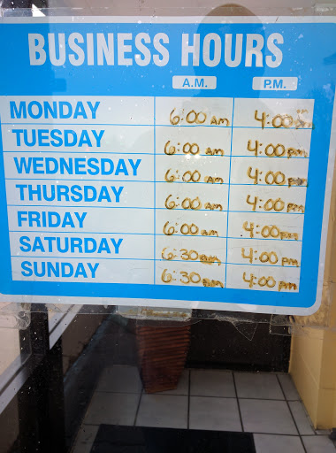 | Working: | 6AM–4PM 6AM–4PM 6AM–4PM 6AM–4PM 6AM–4PM 6:30AM–4PM 6:30AM–4PM |
