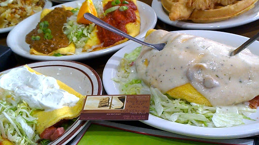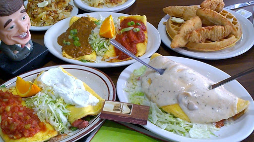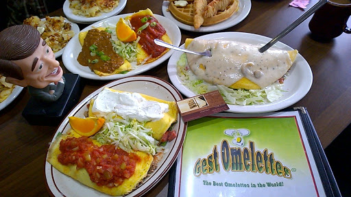 First off, I only give the place one star because they dont allow you to give 0 stars! These place is terrible!!! And for them to specialize in omelettes (hence the name), thats probably the worst thing on there menu! They dont even use real eggs! WTF!!! When they brought out our omelettes, the eggs looked like Pita bread! They omelettes literally looked like 2 grilled chicken pitas from Coney Island! They seriously use egg beaters and Ive never in life seen omelettes that looked like those and tastes so disgusting! In addition, they charged me $34 for food for me +1. Extremely high price for the worst breakfast food I ever had in my entire life! I dont recommend this place to anyone, EVER!!! But if you must go to see for yourself, DO NOT order an omelette or you may regret that you did!