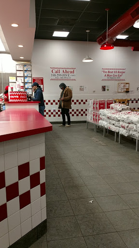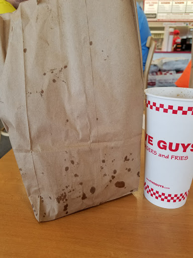 This place usually is good. But i had 5 guys today after many months (i dont eat fast food much) i love the fries & thats basically the only reason i got food from here. I had a carry out. I came back home & i could tell the fries were double fried.....they were disgusting. That upset me. I except that from mcdonalds but not 5 guys! I guess thats the world telling me i dont need that food anyway.