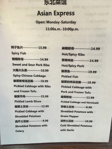 We read reviews and decided to try Asian Express. Food looked and smelled good. We had General chicken. It was not very spicy and chicken coating was soft and chewy. Pork in sweet and sour pork had same soft and chewy coating. The Fried Crab Rangoon was the same way. Wrap was soft and chewy. Inside had good flavor. All three of these dishes were fried to a good gold color only they were tough and chewy and not crispy.