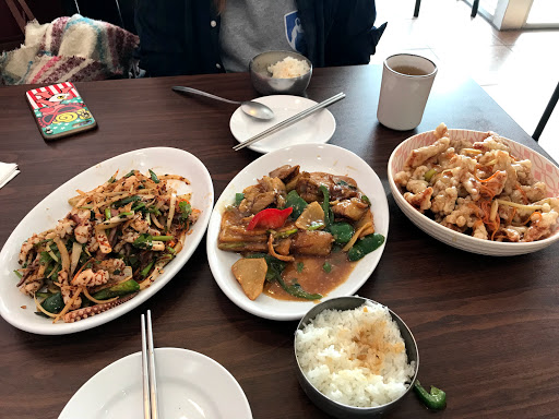 A casual and unassuming location. Can seat a party of 5. Pick from the Chinese traditional menu and the offerings posted on the wall. Delicious! Served as its ready, piping hot. I recommend the snow peas, dumplings, hot chicken and fried pork with egg plant.