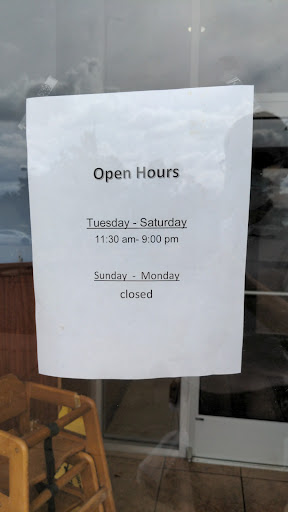 | Working: | 11AM–9:30PM 11AM–10PM 11AM–10PM 11AM–10PM 11AM–10PM 11AM–10PM Closed |
