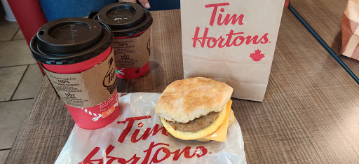 Stopped in before work to find that about twelve people were working the morning rush and they were ON! Ive never seen more diligent workers who were also happy to greet customers and even joked while they worked. It was a nice experience and definitely one of the best Tim Hortons Ive ever been to.