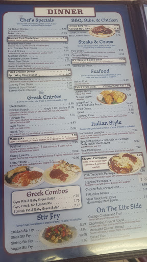 This isnt what you would think of as a five star restaurant but its a family-owned Greek diner with a great menu great service and a very clean place. My wife and I live 50 miles away and whenever were in the area we try to stop in for a meal and were never disappointed.